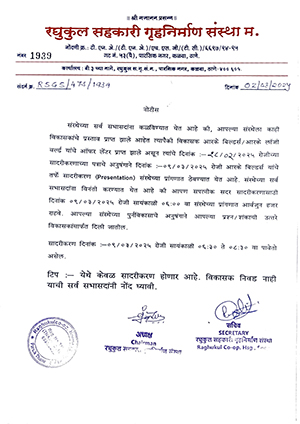 रघुकुल सोसायटी विकासक सादरीकरण नोटीस