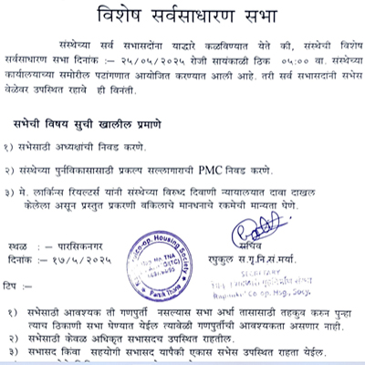 विशेष सर्वसाधारण सभा - दिनांक २५-०५-२०२५
